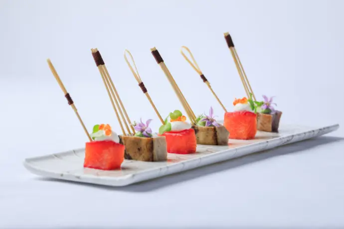 Des pièces cocktail élégantes et pleines de goût, accompagnées d'animations culinaires conviviales, pour un début de réception de mariage tout en finesse et en générosité.